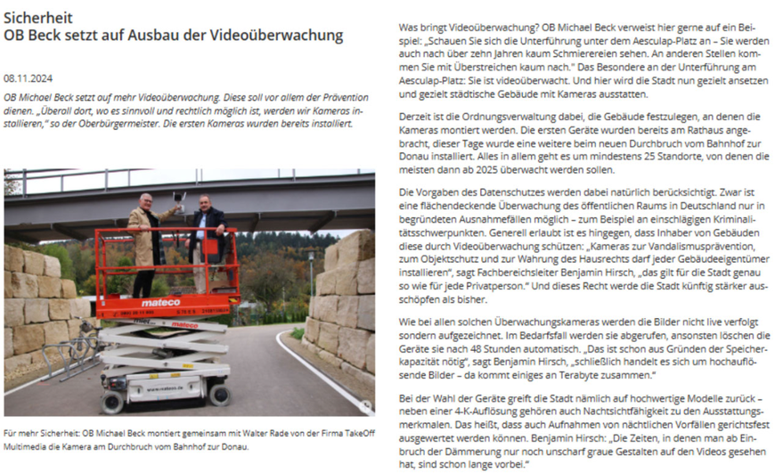 Seit August überwacht die Stadt Tuttlingen im Rahmen eines Pilotprojekts zwei Containerstandorte mit Videokameras. Dabei geht es allerdings nicht nur um optische Aspekte, sondern auch um die handfesten hygienischen Probleme, die die illegalen Müllablagerungen verursachen: „Wo Müll liegt, haben wir meist auch mit Ratten zu kämpfen“, berichtet Hirsch. Durch die konsequente Ahndung erhofft sich die Stadt eine deutliche Reduzierung der illegal abgelagerten Abfälle – und eine direkte Chance, Müllsünder auch direkt zur Rechenschaft zu ziehen. Vor allem geht die Stadt davon aus, dass die Überwachung mittelfristig vor allem präventiv wirkt – weil sich herumgesprochen hat, dass man nicht mehr unbeobachtet seinen Müll abladen kann.